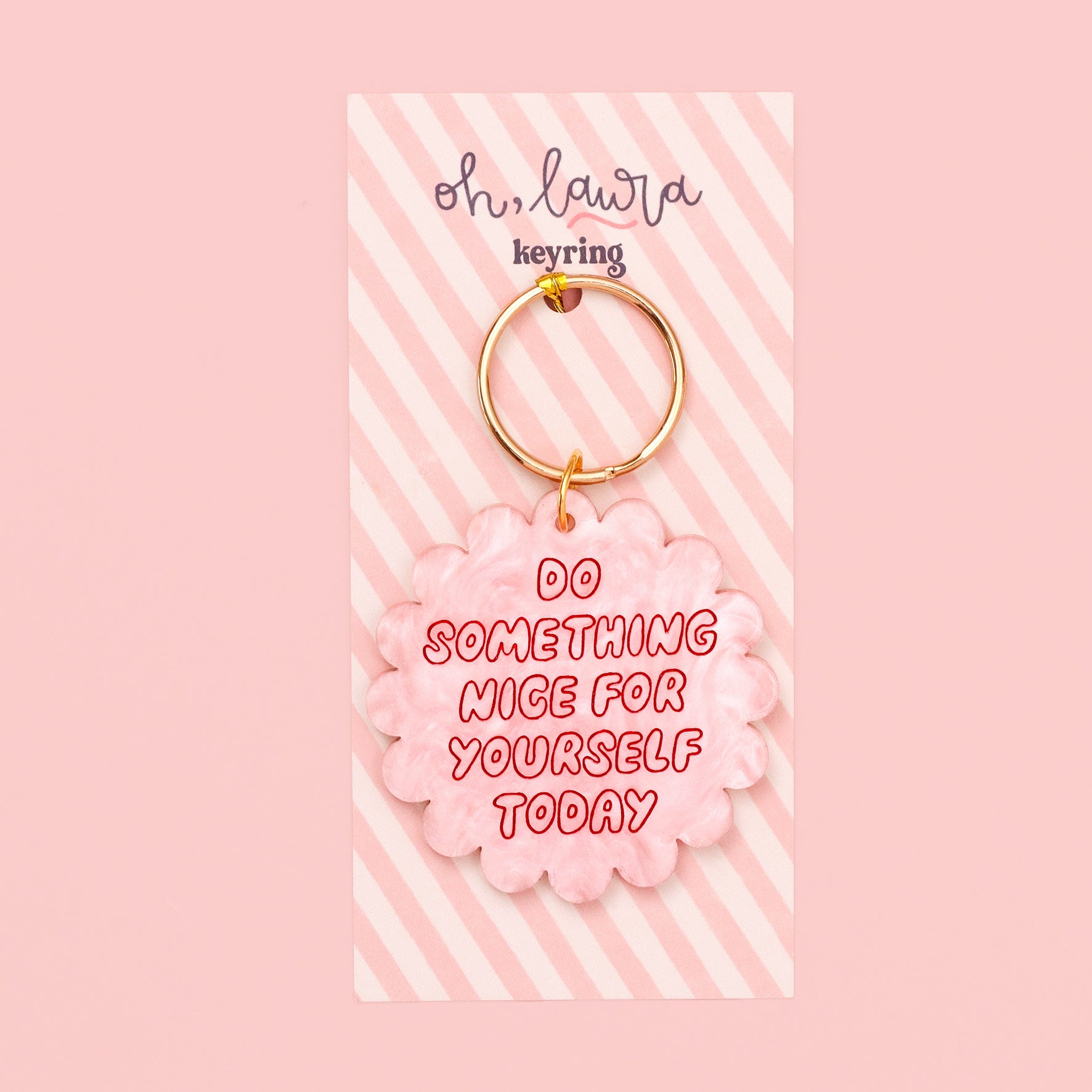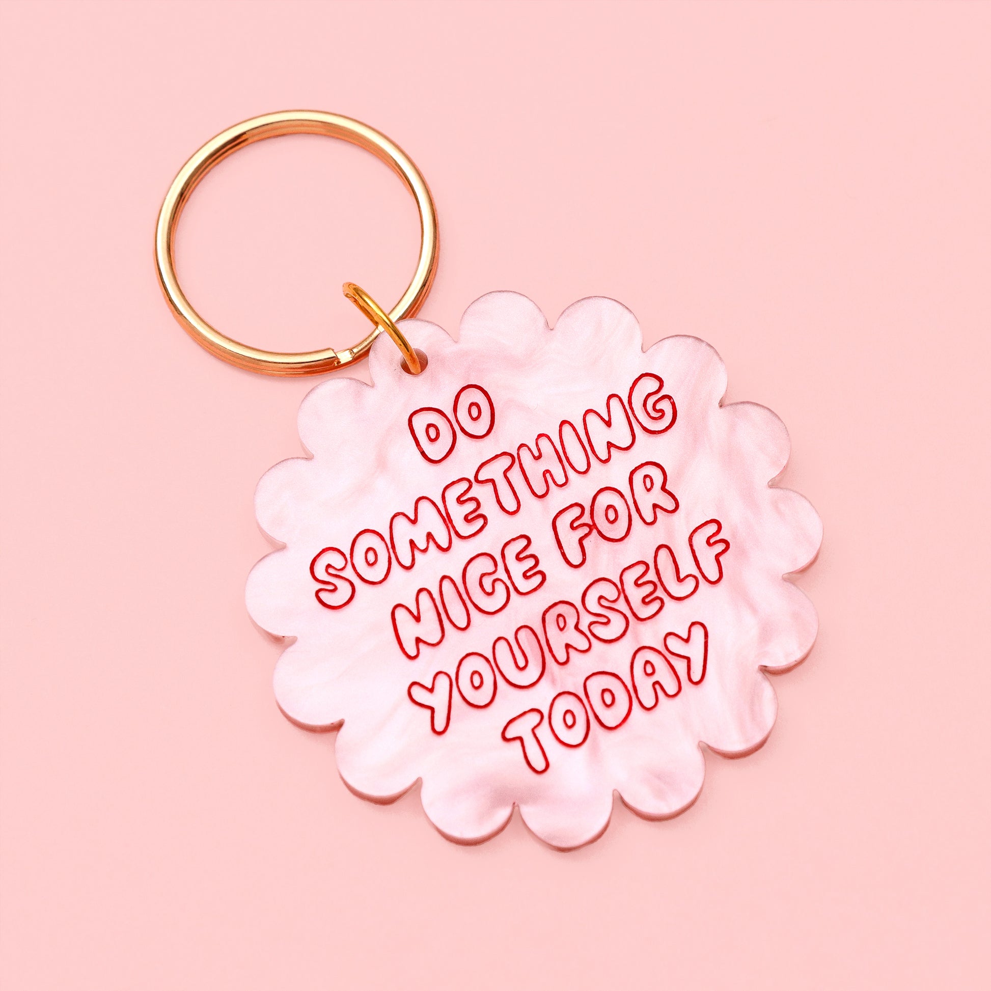 A pep talk, but make it pocket-sized. This pink pearl marble keyring with red engraved text is the perfect daily nudge to rest, hydrate, stretch – or binge-watch your fave show.