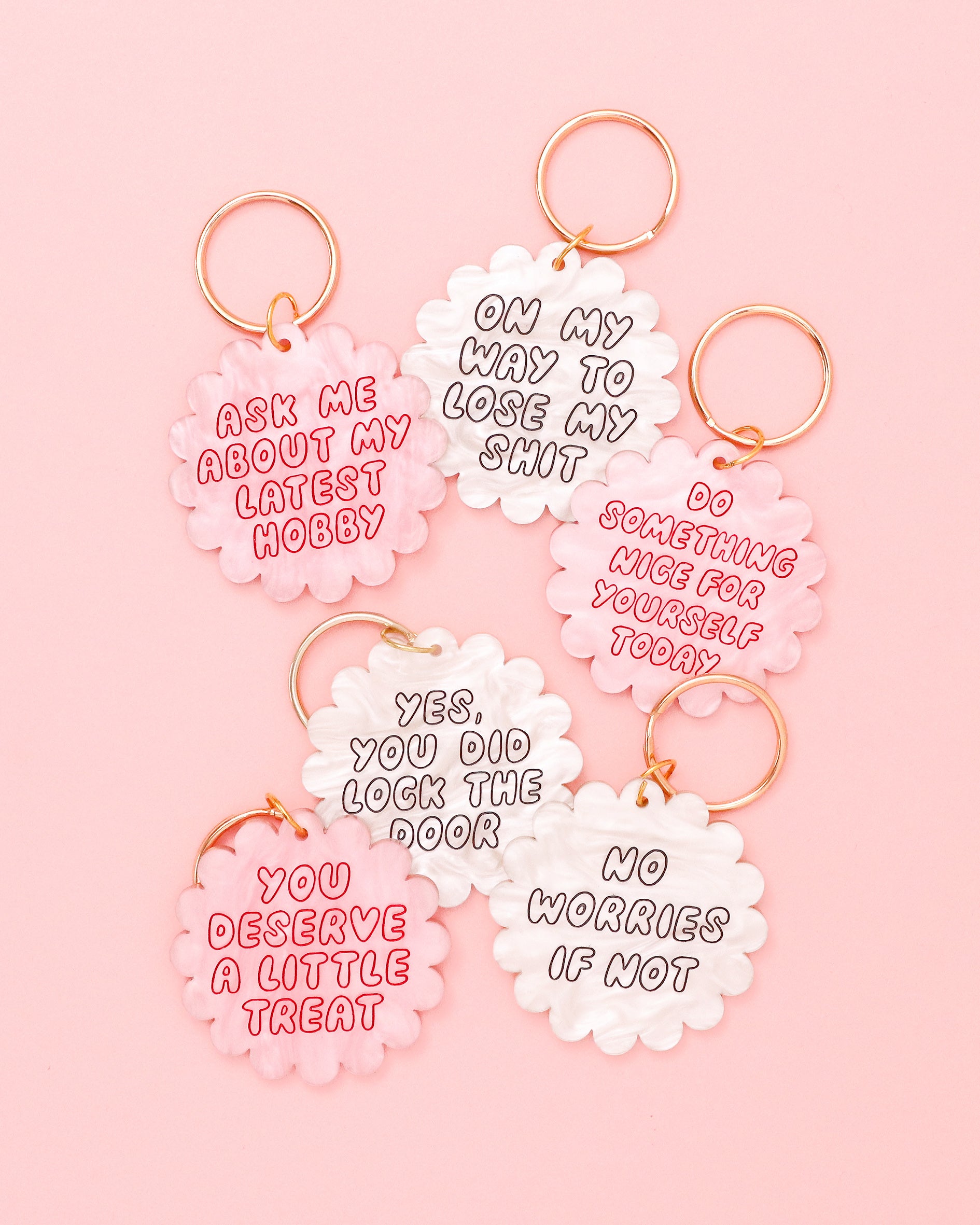 Because some days just start chaotic. This white pearl marble keyring with black text is your tiny talisman of truth. Add it to your keys, bag or planner and let the world know you're doing your best (but barely).
